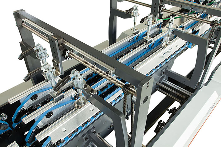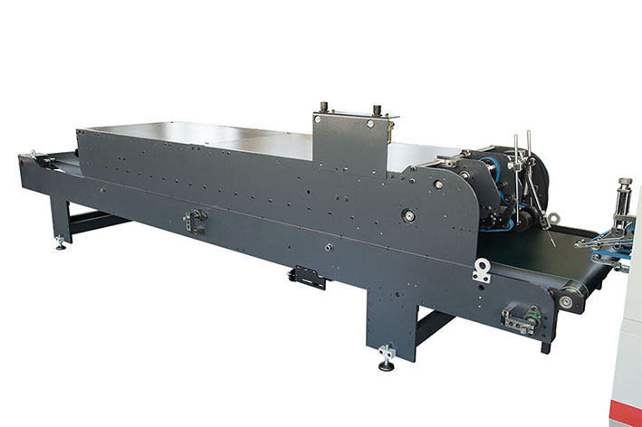 Sectional belt feeder with special design, fexible and adjustable per product requirerment without tightening or loosening the beit. Electronic giue sprayer(required)